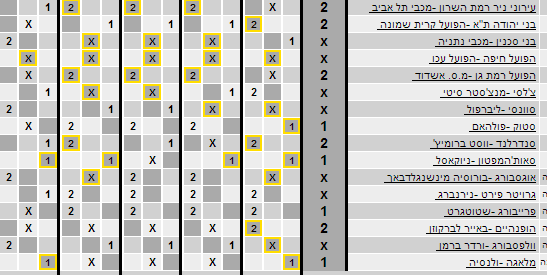 לאחר ההצלחה בשבוע הראשון שלי בשיטה זו, אני ממשיך באותה שיטה. כמו שראיתם היה חסר לי רק 3 ניחושים לפרס הראשון. השבוע נמשיך בשיטה זו אם שינוי קטן בתנאים ובהצלבות של המשחקים